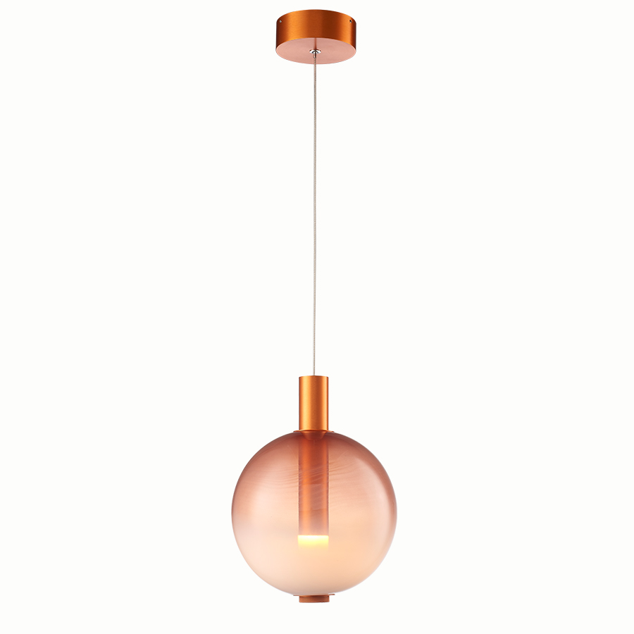 Κρεμαστό 1φωτο φωτιστικό με χειροποίητο γυαλί σφουμάτο σε απαλό ροζ χρώμα και μεταλλικές λεπτομέρειες σε χρώμα misty rose.