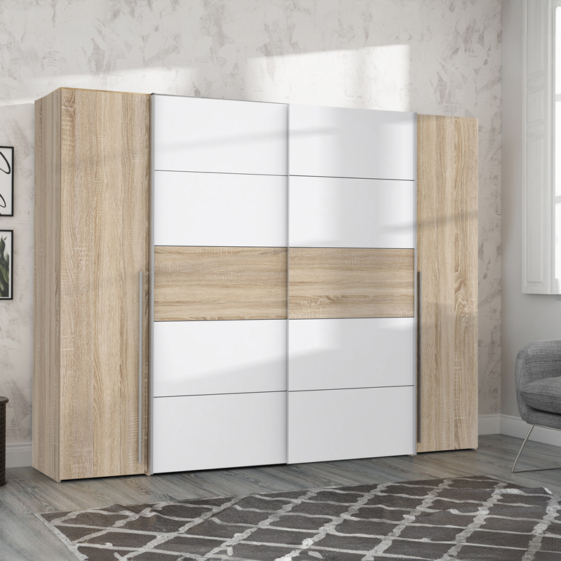 Ντουλάπα ρούχων Verzo pakoworld τετράφυλλη oak-λευκό μελαμίνης 270,5×61.5×210.5εκ