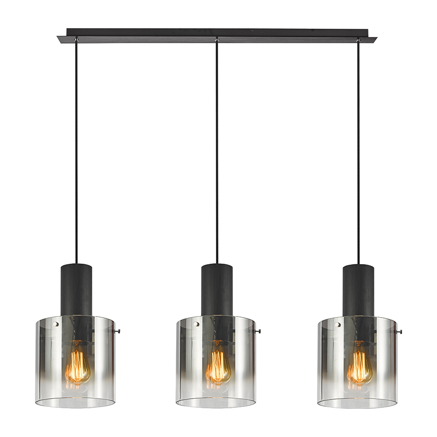 Inlight Κρεμαστό φωτιστικό LED απο μαύρο μέταλλο και φιμέ γυαλί, 70x200cm, 3CCT (Θερμό- Φυσικό- Ψυχρό Φως), Φωτεινότητα 3960LMκαι 3x12W (4075-3R-Black/Smoky)