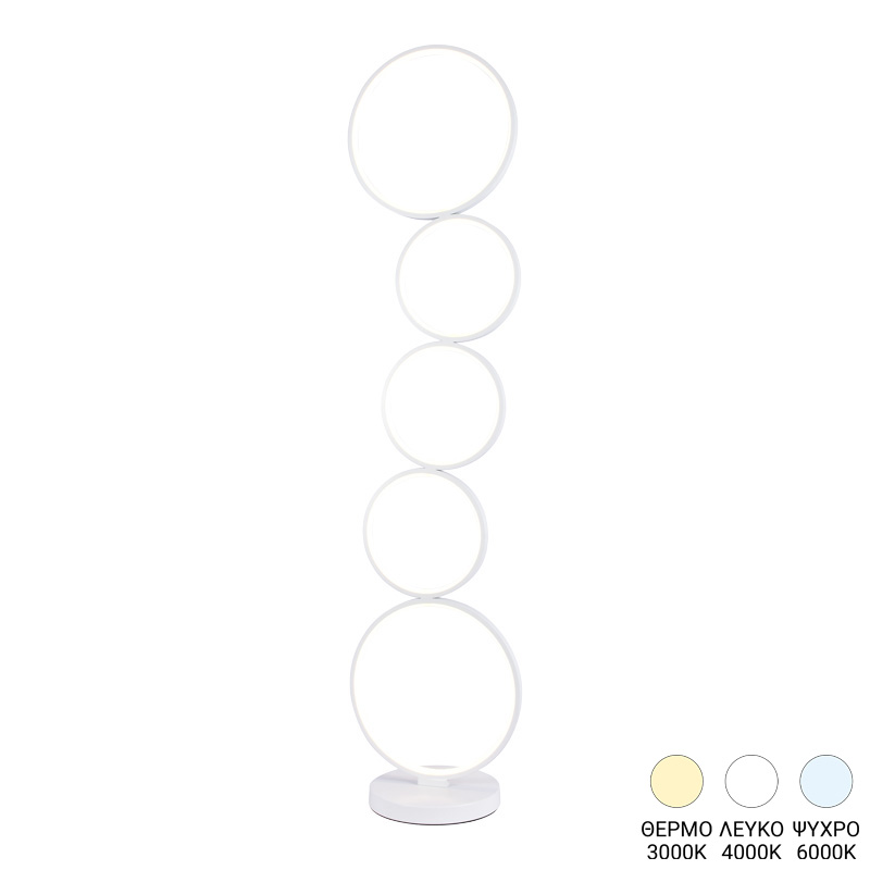 Το φωτιστικό δαπέδου Chemal είναι σχεδιασμένο με βάση το σύγχρονο στυλ διακόσμησης. Αποτελείται από πέντε κύκλους, δηλαδή πέντε φώτα led. Ανανεώστε το χώρο σας με ένα επιδαπέδιο φωτιστικό εγωμετρικής αρμονίας και εξαιρετικής ποιότητας.