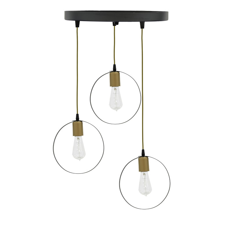 Φωτιστικό οροφής τρίφωτο Kasper pakoworld E27 μαύρο-χρυσό Φ30×79εκ