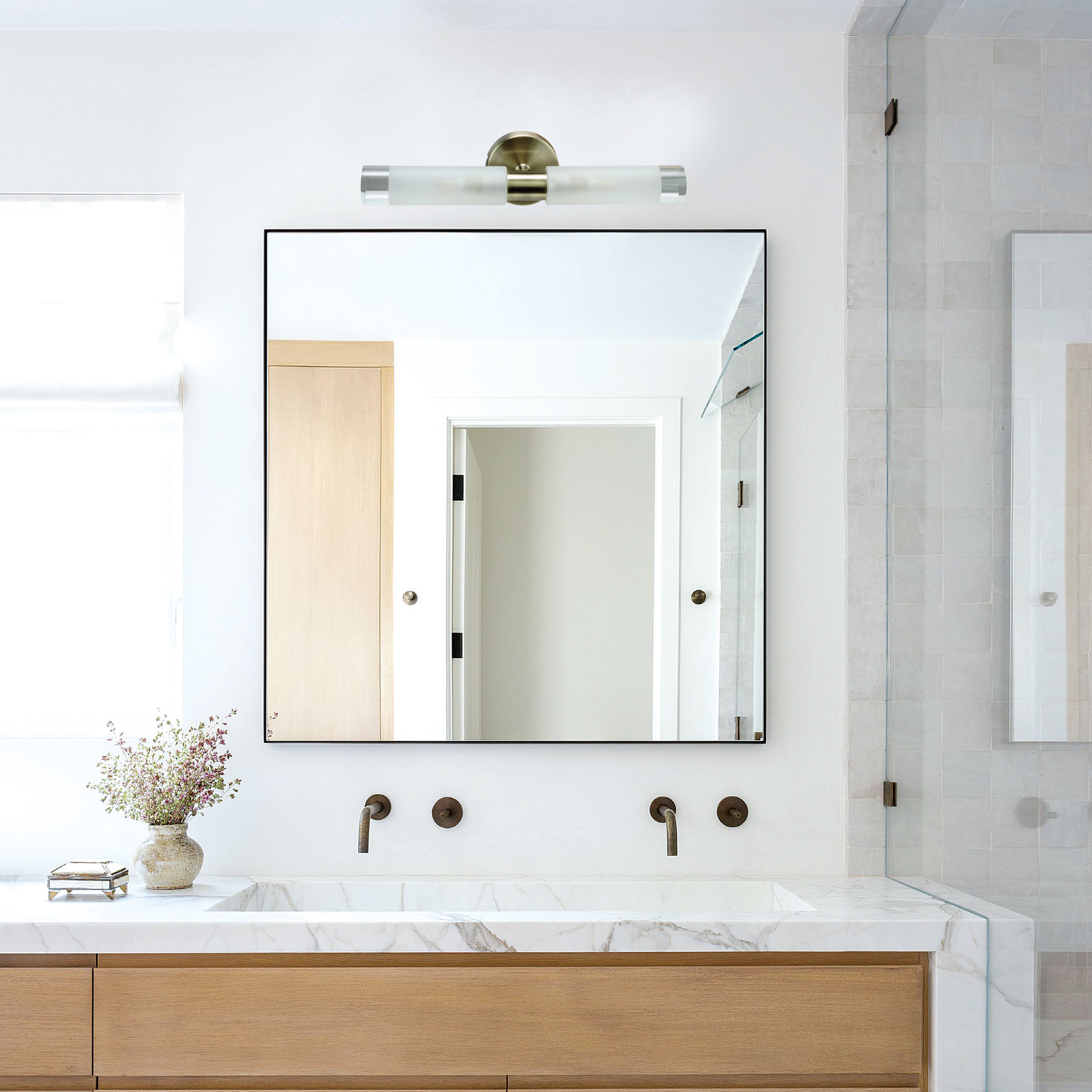 Πρόκειται για ένα επιτοίχιο φωτιστικό κατασκευασμένο από μέταλλο σε νίκελ ματ απόχρωση με δύο λαμπτήρες που καλύπτονται από κυλινδρικό γυαλί αμμοβολής με διάφανες λεπτομέρειες. Είναι η ιδανική επιλογή για φωτισμό μπάνιου τοποθετημένο πάνω από τον καθρέπτη αφού το φως διαχέεται ομοιόμορφα.