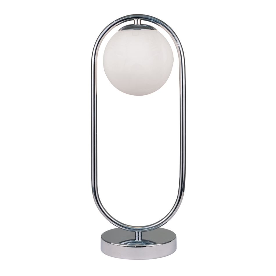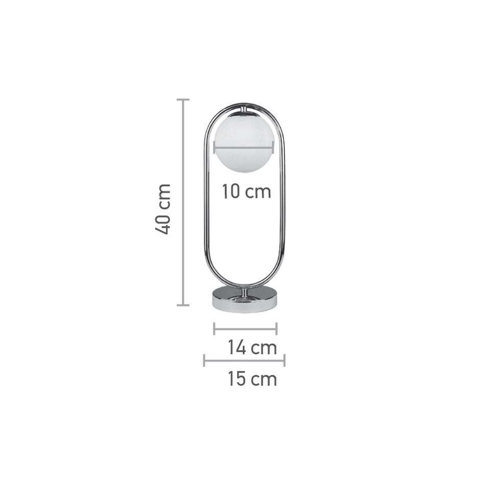 Πρόκειται για ένα φωτιστικό κατασκευασμένο από χρώμιο μέταλλο και λευκή οπαλίνα. Το φως διαχέεται ομοιόμορφα.