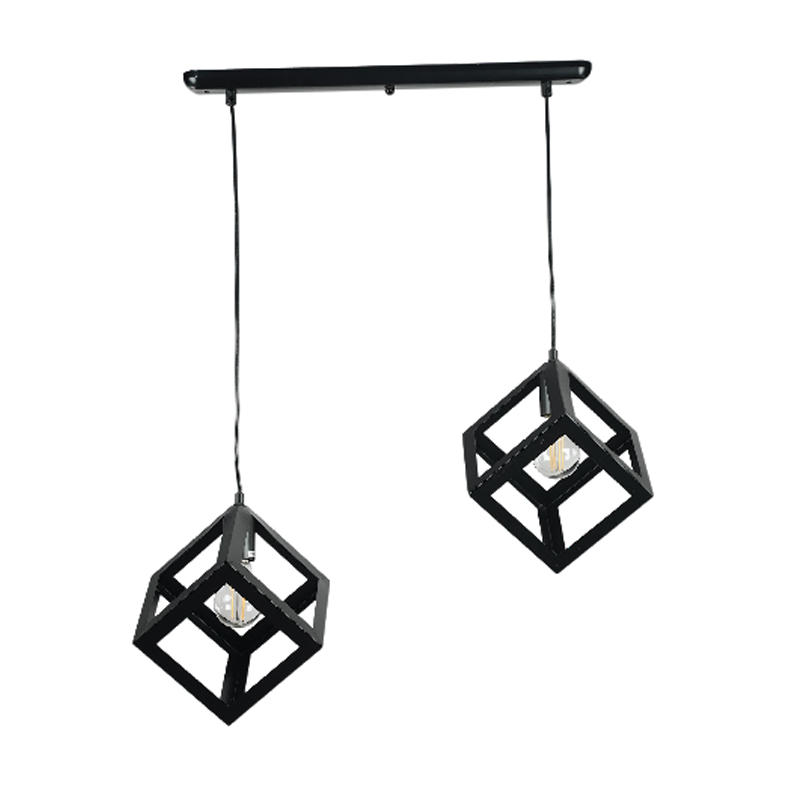 Πρόκειται για ένα μεταλλικό κρεμαστό φωτιστικό σε χρώμα μαύρο. Η μίνιμαλ γεωμετρική του σχεδίαση το τοποθετεί σε οποιονδήποτε μοντέρνο εσωτερικό χώρο. Η ανάρτησή του ρυθμίζεται για να λάβει το επιθυμητό ύψος. Το φως διαχέεται σε όλον τον χώρο ομοιόμορφα.