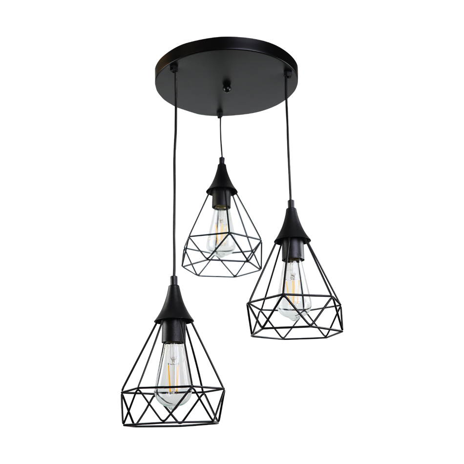 InLight Κρεμαστό φωτιστικό από μαύρο μέταλλο 3XE27 D:60cm (4024-3-BL-RAIL)