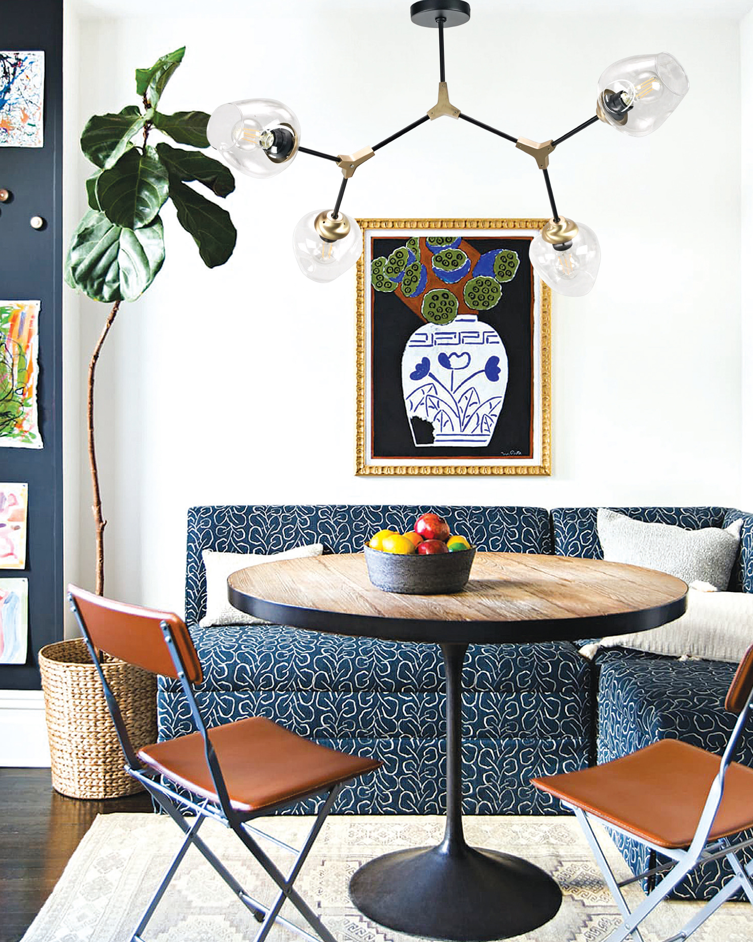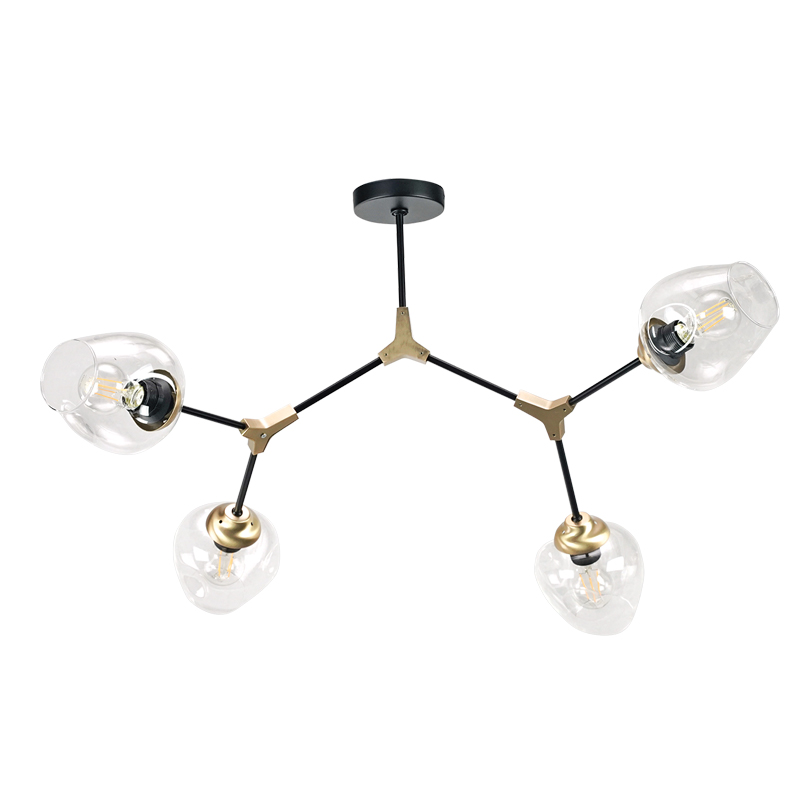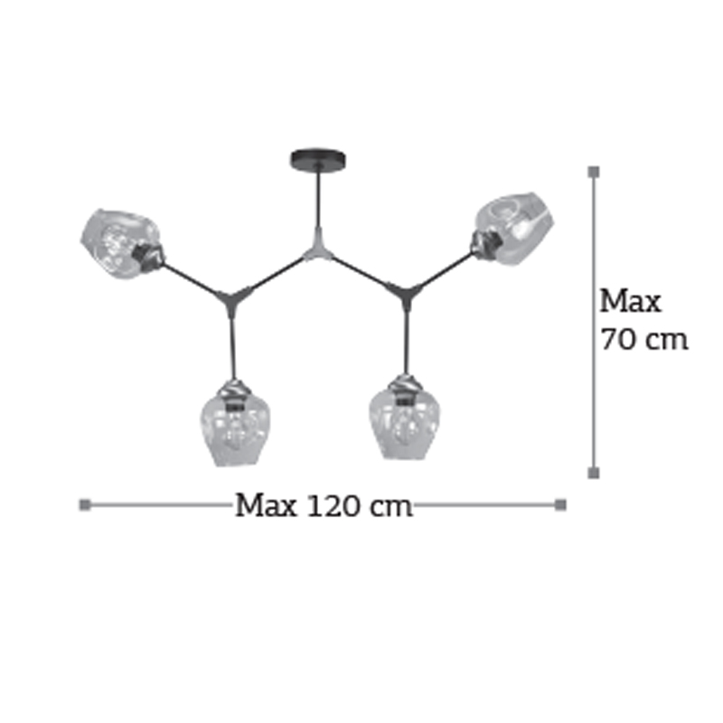 Πρόκειται για ένα μεταλλικό κρεμαστό φωτιστικό μαύρου χρώματος με χρυσαφί διακριτικά στοιχεία και τέσσερις λαμπτήρες. Το γυαλί είναι διάφανο, αλλά υπάρχει και η επιλογή του φιμέ χρώματος. Οι βραχίονες κινούνται για να λάβουν το επιθυμητό σχήμα. Η μίνιμαλ σχεδίασή του το τοποθετεί σε οποιονδήποτε μοντέρνο εσωτερικό χώρο.