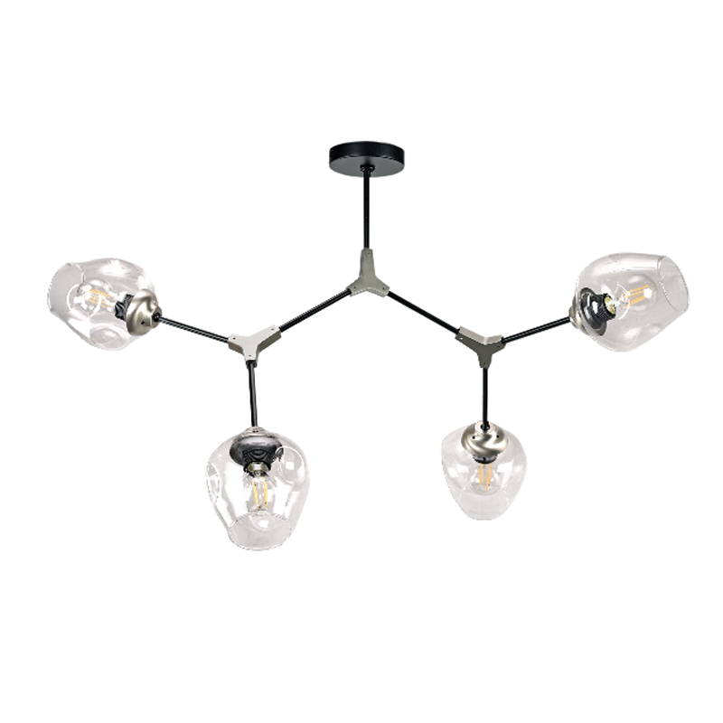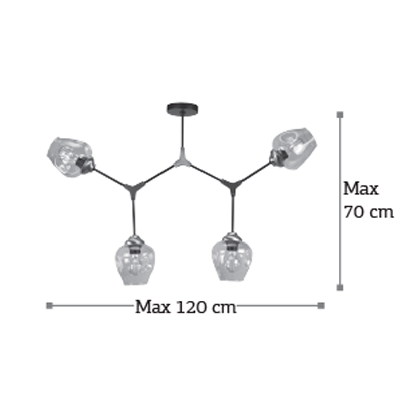 Πρόκειται για ένα μεταλλικό κρεμαστό φωτιστικό μαύρου χρώματος με νίκελ διακριτικά στοιχεία και τέσσερις λαμπτήρες. Το γυαλί είναι διάφανο, αλλά υπάρχει και η επιλογή του φιμέ χρώματος. Οι βραχίονες κινούνται για να λάβουν το επιθυμητό σχήμα. Η μίνιμαλ σχεδίασή του το τοποθετεί σε οποιονδήποτε μοντέρνο εσωτερικό χώρο.