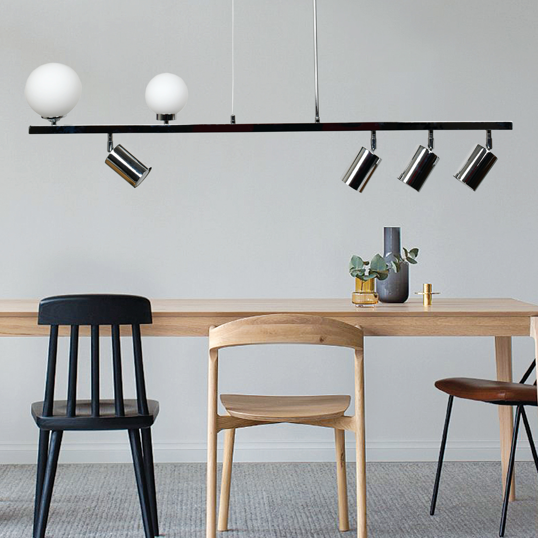 InLight Κρεμαστό φωτιστικό από χρώμιο μέταλλο και λευκή οπαλίνα 2XG9 και 4XGU10 D:110cm (6191-CH)