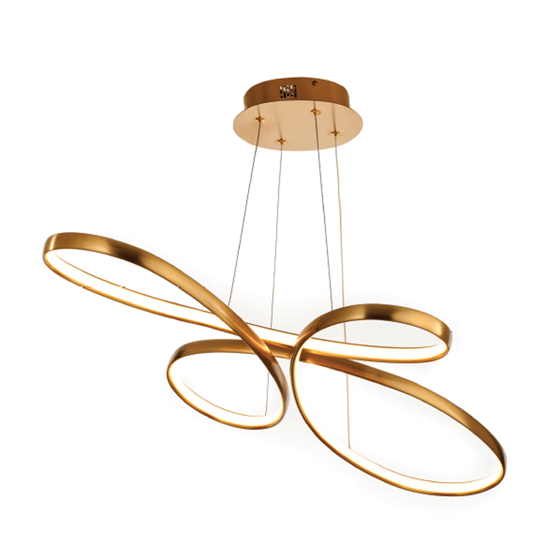 Πρόκειται για ένα χρυσό ματ κρεμαστό φωτιστικό με κυκλική σχεδίαση κατασκευασμένο από αλουμίνιο. Η λευκή ακρυλική του επιφάνεια καλύπτει τον led φωτισμό 3CCT απόχρωσης. Η ανάρτησή του είναι ρυθμιζόμενη ώστε να προσαρμόζεται στον κάθε χώρο.