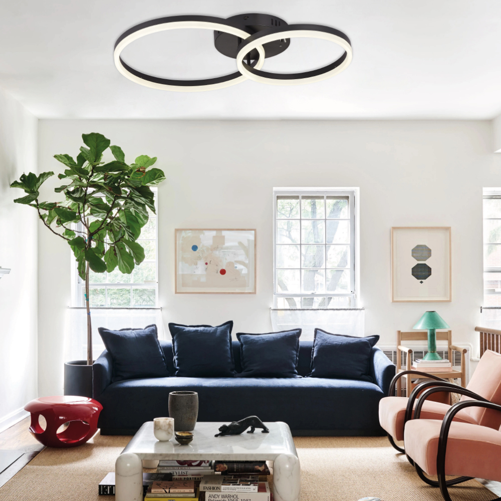 Φωτιστικό οροφής LED 45W σε χρυσαφί απόχρωση με επιλογή απόχρωσης φωτισμού απο διακόπτη που βρίσκεται στην β΄άση του φωτιστικού (3CCT by switch on base) .Το προϊόν ντιμάρεται απο απλό διακόπτη τοίχου με εναλλαγή στο πάτημα (3 step dimmable)